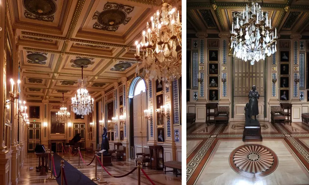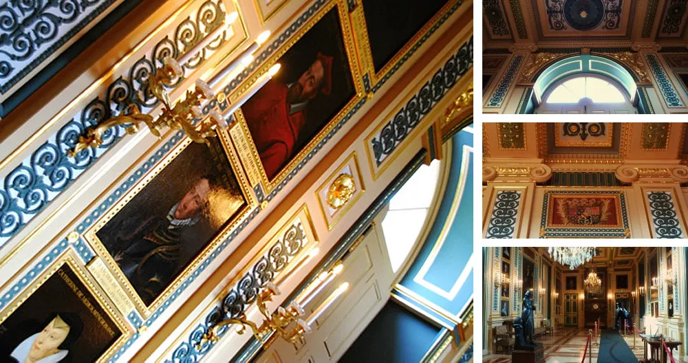Travée de l’escalier et des salons, boudoir et habillage plomb des corniches.