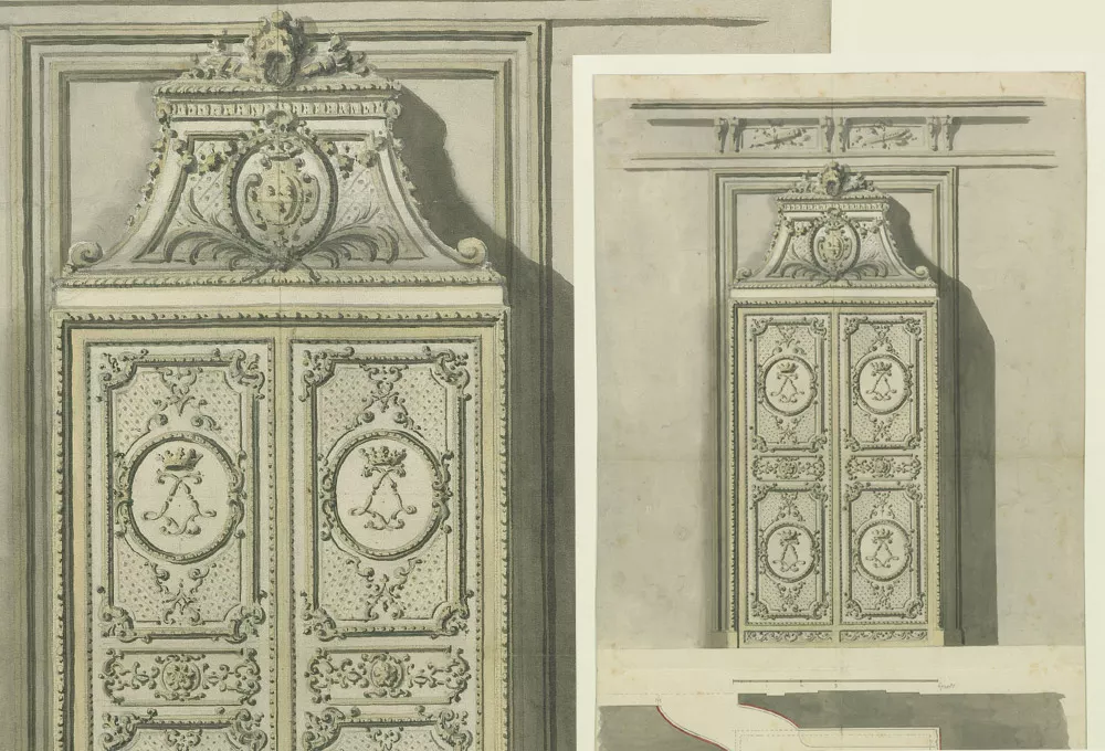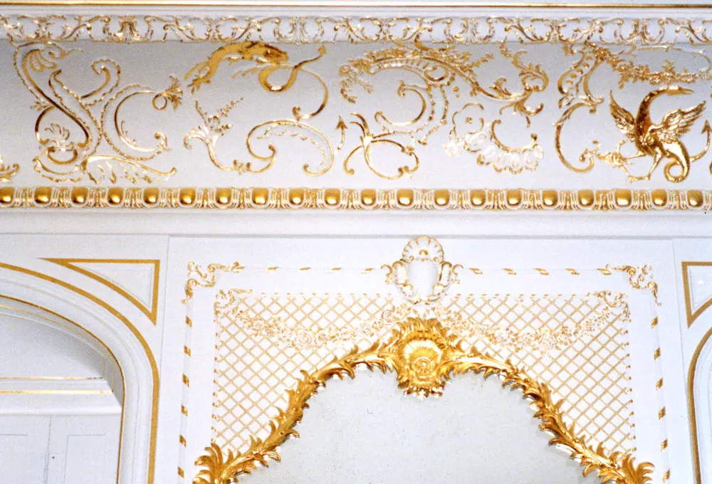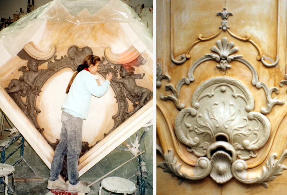 Archival research, creation of a scale model, and full-scale drawings of the cornice ornaments as well as all the decorated panels.