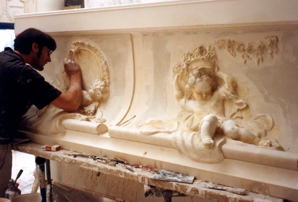 Assembly of the architectural structure, modelling and carving of all the ornamentation.