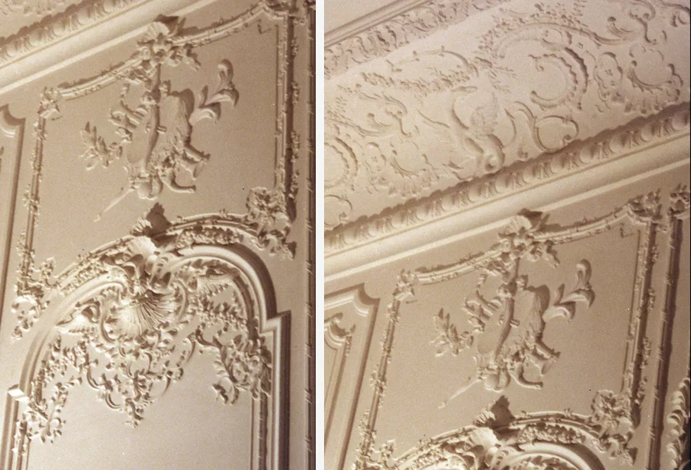 The moulds were cast in elastomer, and the decorative elements were produced in staff.