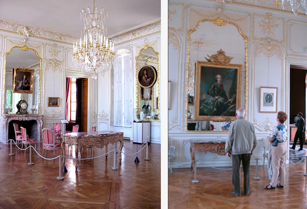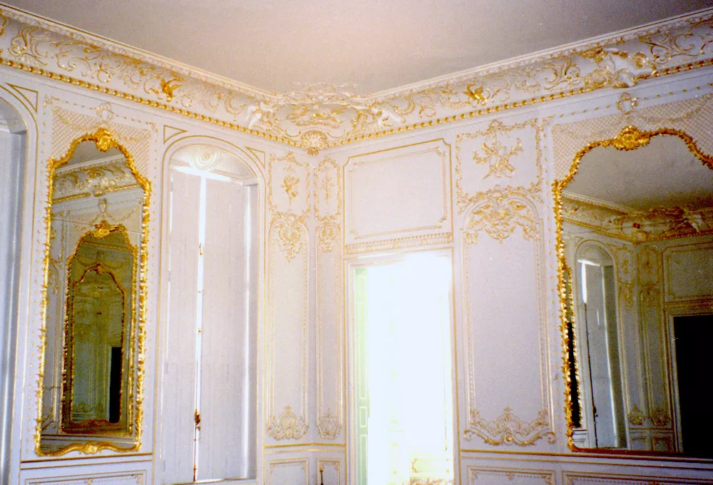 A photograph dating from 1930, taken before the dismantling of the woodwork, revealed that the décor had been copied from the oval drawing room of the Hôtel de Soubise.
