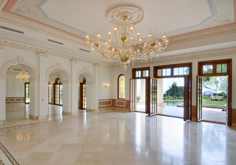 Creation, fabrication and installation of all staff cornices, capitals, columns, pediments and rosettes throughout the entire palace.