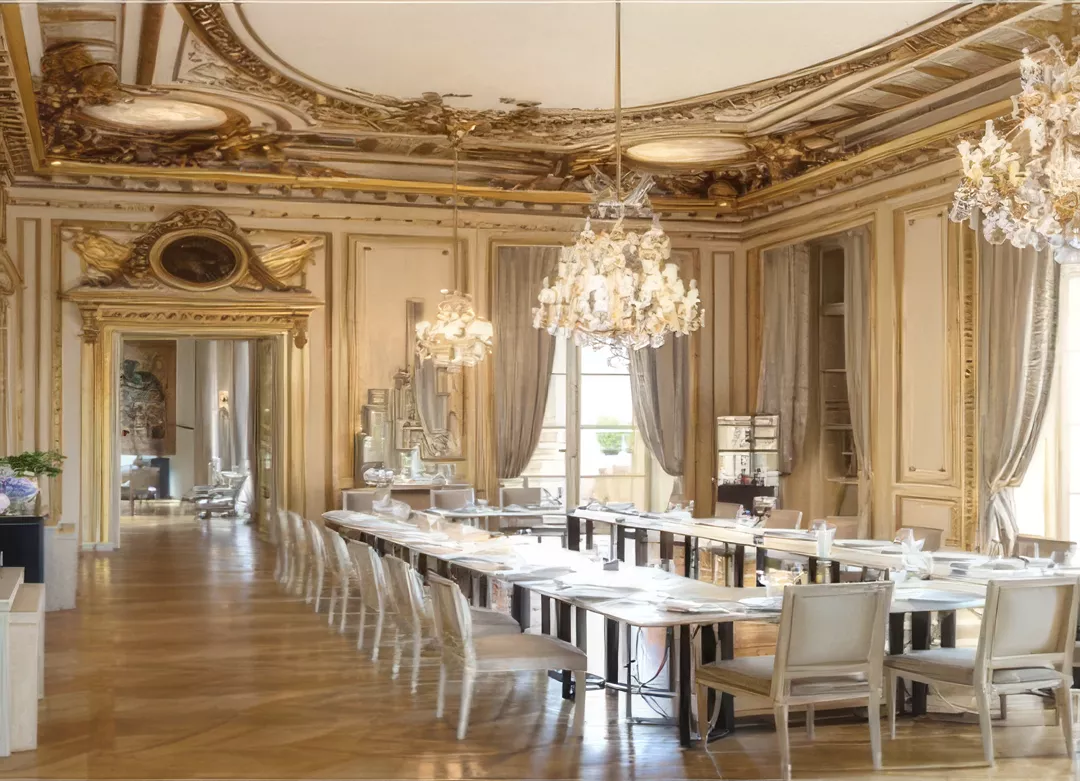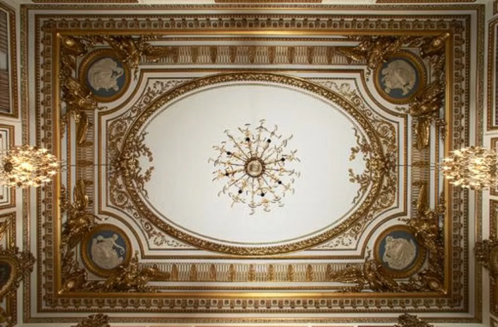 Nous avons également restauré les gypseries et les éléments décoratifs en plâtre des trois salons au premier étage – Salon des Aigles, Salon Marie-Antoinette et un espace intimiste- pour redonner leur éclat à ces décorations délicates et raffinées.