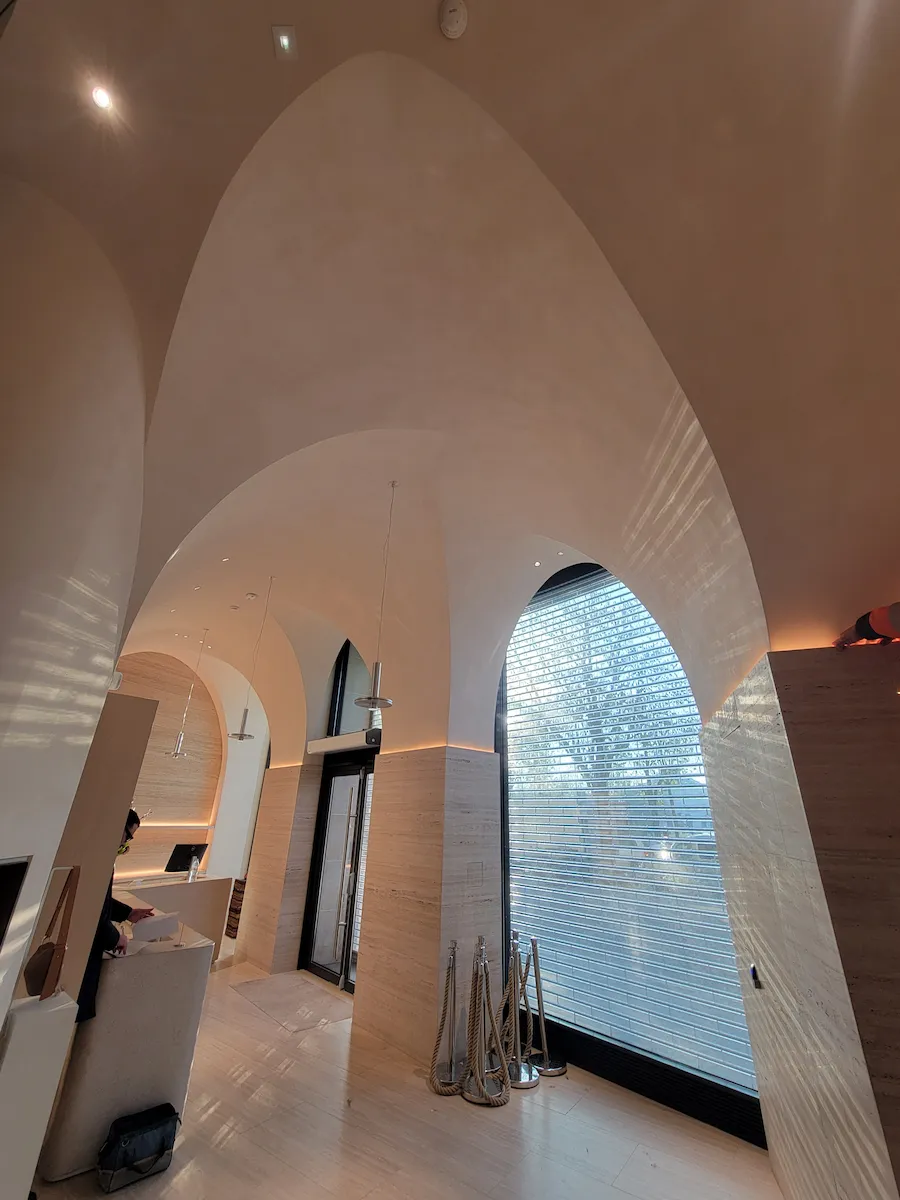 Notre défi a été de refaire à l’identique le décor stuc datant de 1906 en intégrant au-dessus des décorations, le passage des réseaux d’air, d’eau, climatisation, ainsi que le réseau électrique sans altérer les lignes et courbes de l’histoire. Travaux dans les zones du rez-de-chaussée comportant la réalisation d’habillages décoratifs en Stuc-Pierre, comprenant murs, plafonds, moulures, ornements, pilastres….